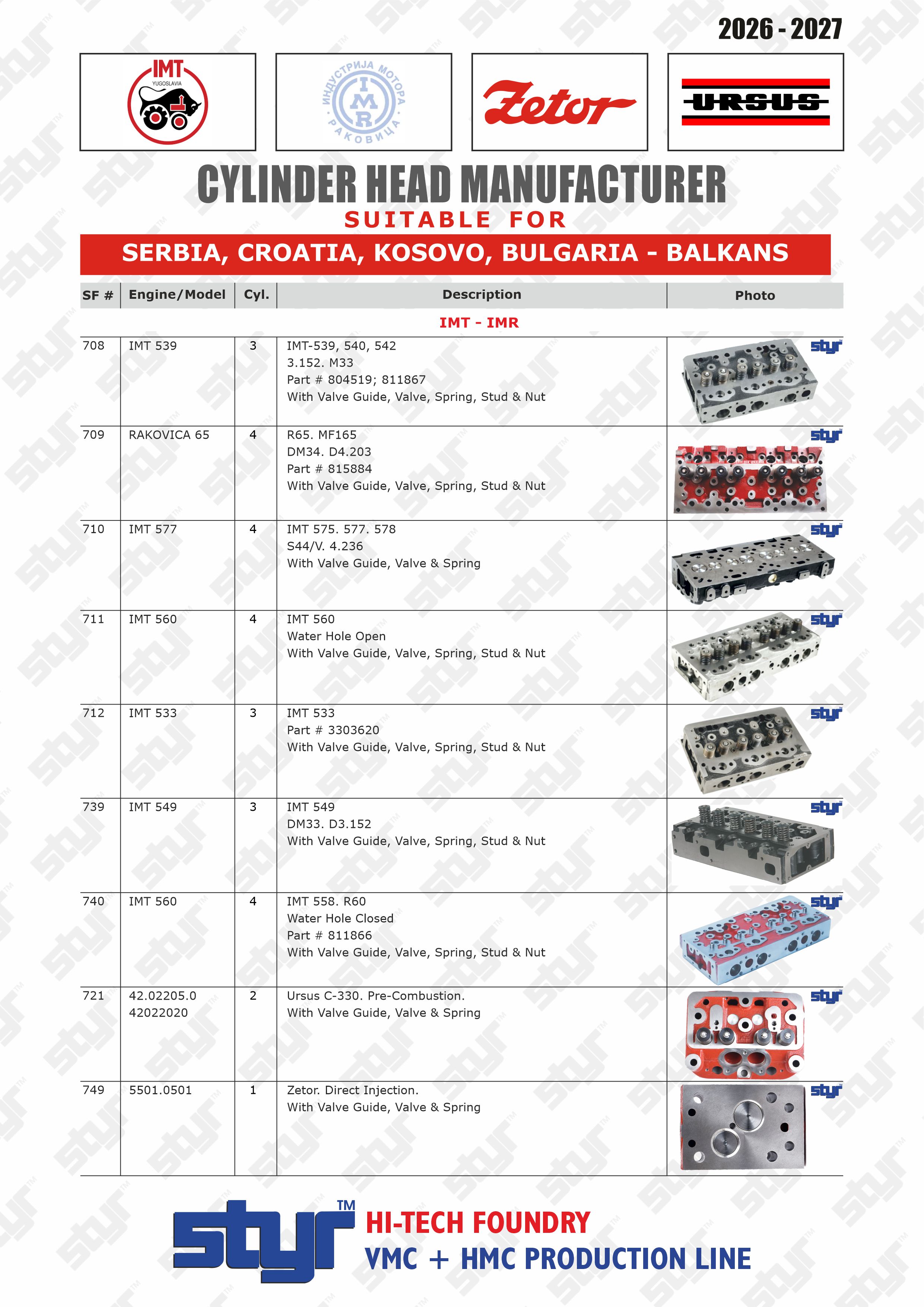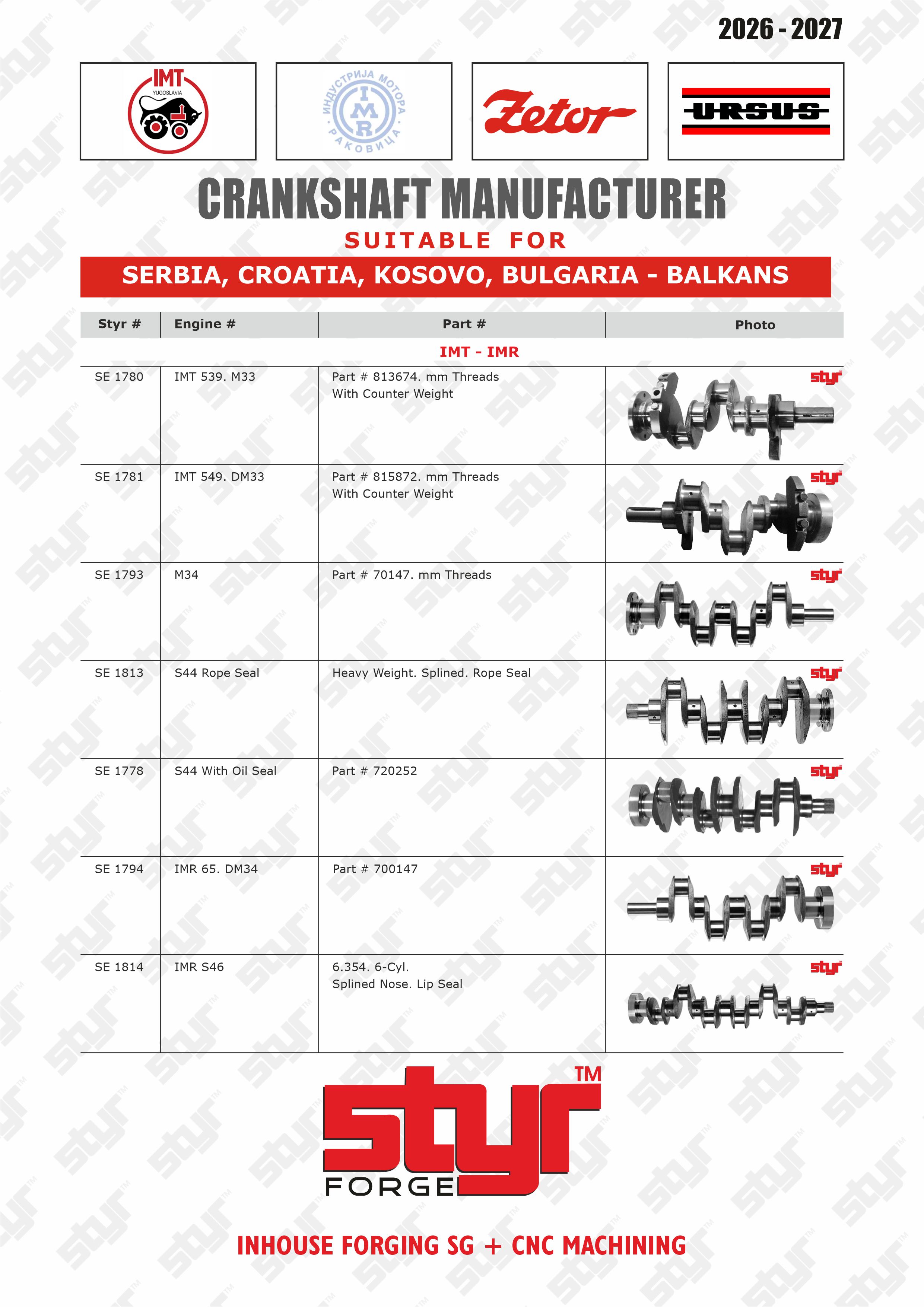 CATALOGUES STYR Forge Crankshaft Catalogue STYR Cylinder Head Catalogue STYR Forge Connecting Rod Catalogue IMR-IMT RANGE IMR - IMT Crankshaft Range IMR - IMT Cylinder Head Range